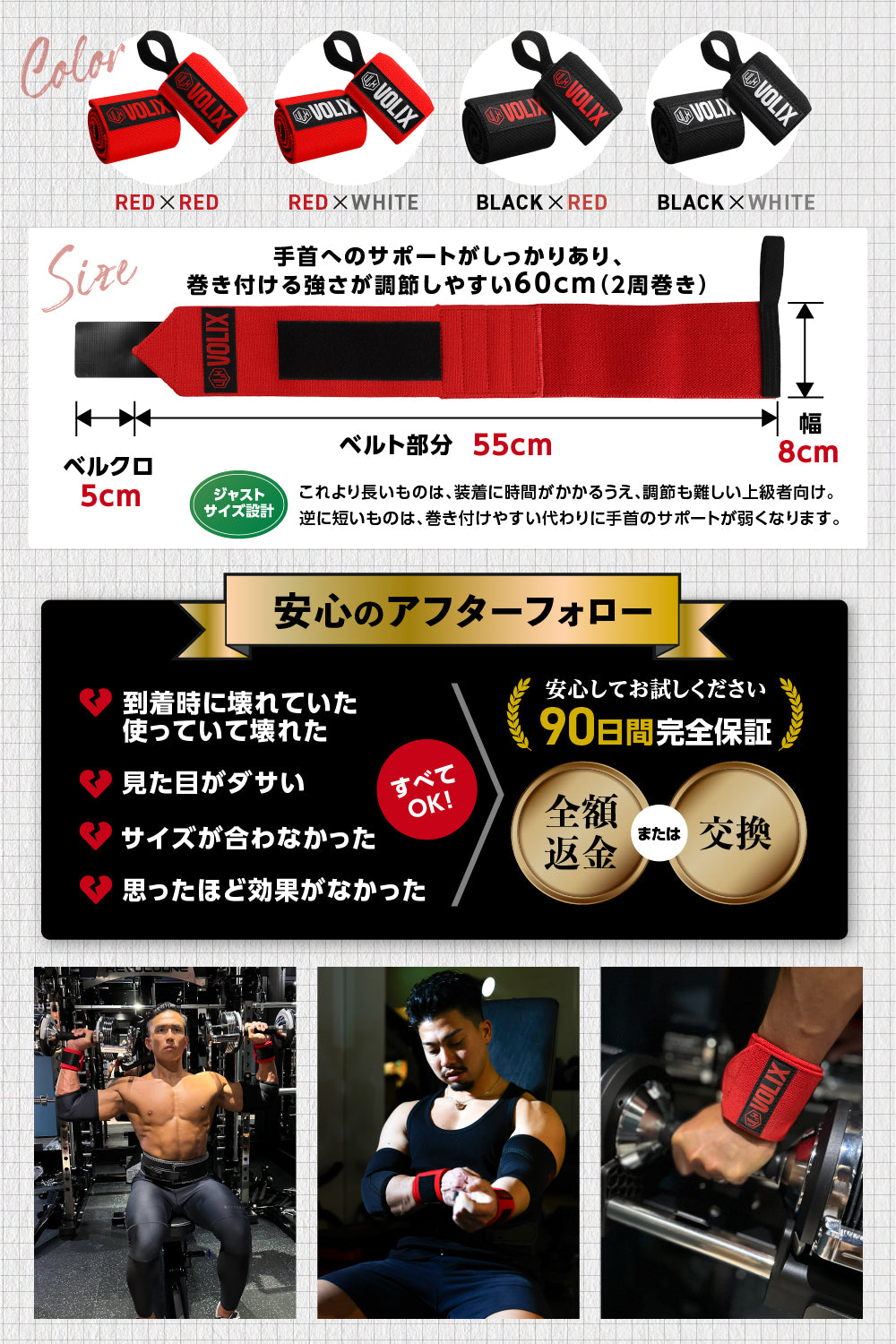 特許出願中 リストラップ【2種類の生地が融合してガッチリ固定できるのに、痛くない】筋トレ 手首 サポーター ベンチプレス